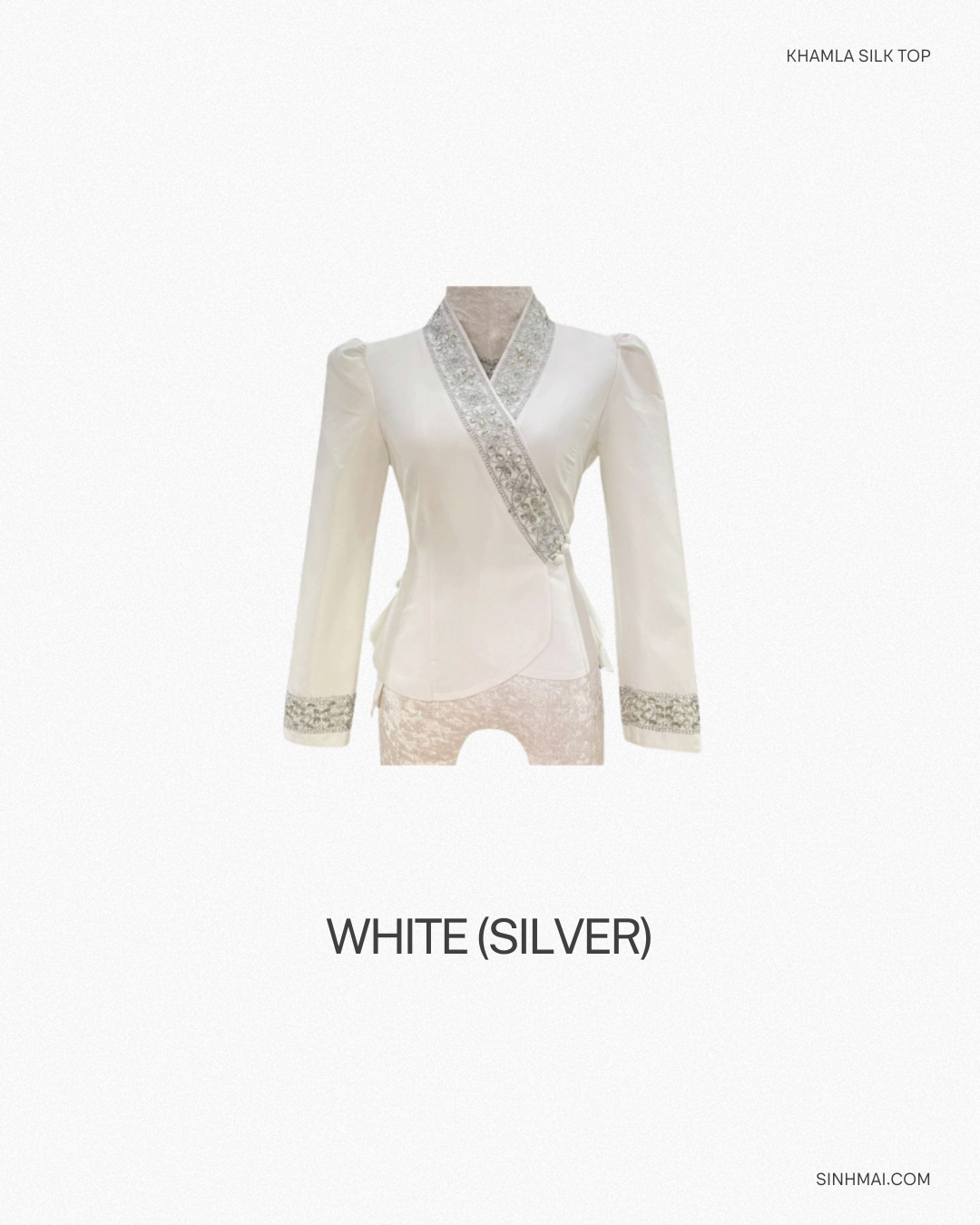 The Khamla Silk Top is a timeless piece that perfectly blends classic elegance with chic sophistication. Crafted from smooth, luxurious silk, it pairs beautifully with a traditional sinh, creating a graceful and polished look. Elevate your style with this versatile top that honors tradition while offering enduring fashion appeal.