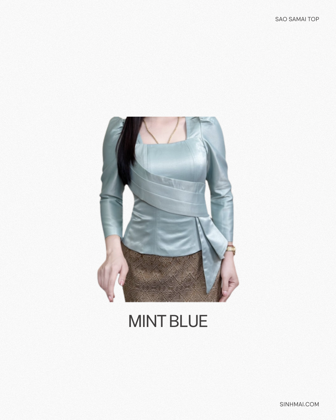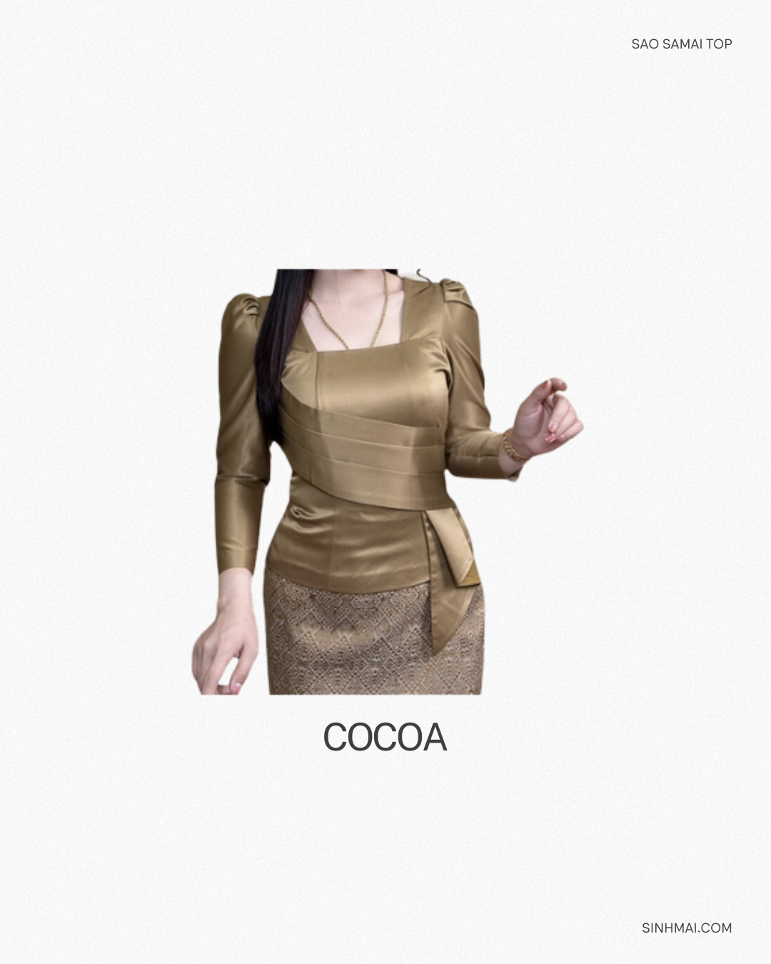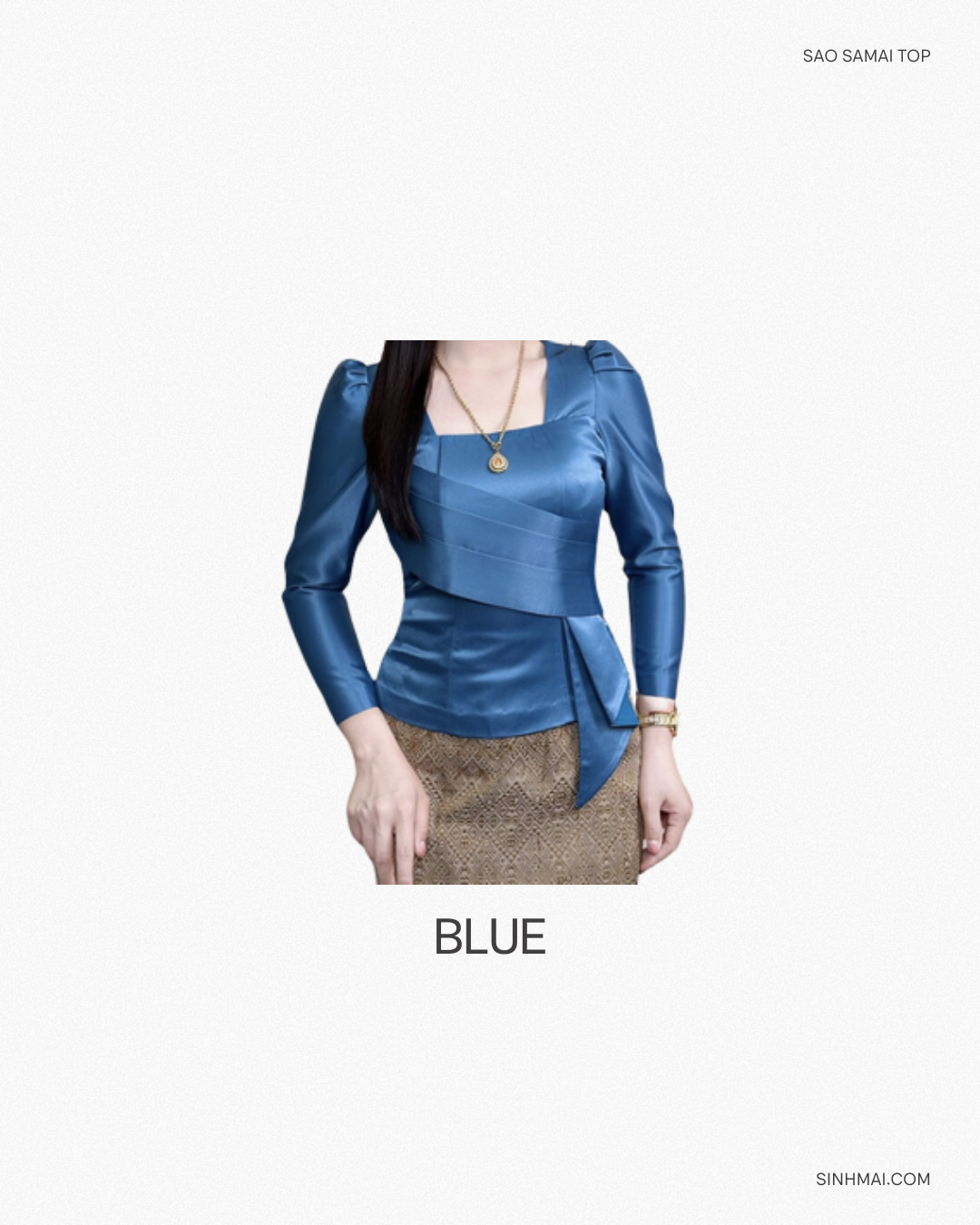 These elegant tops—featuring a fitted silhouette with a wrapped sash. Named after Laotian culture highlighting femininity and modern tradition.