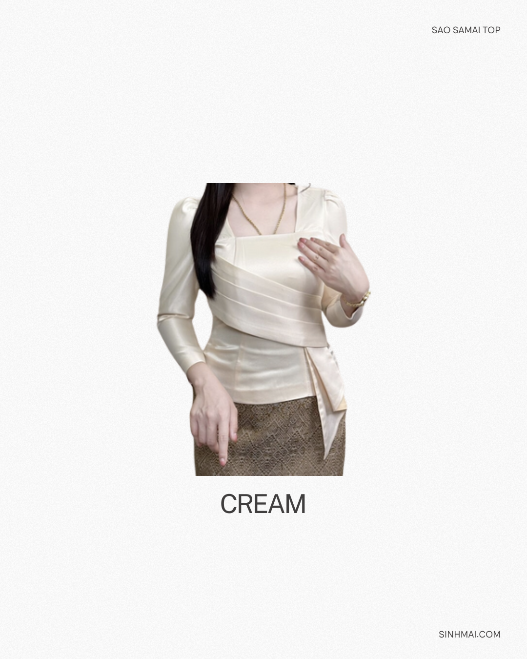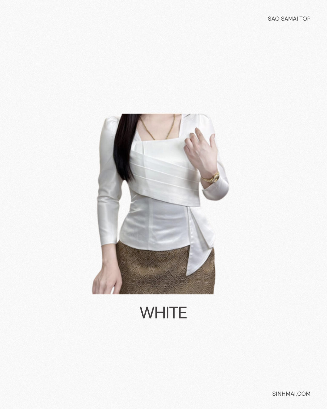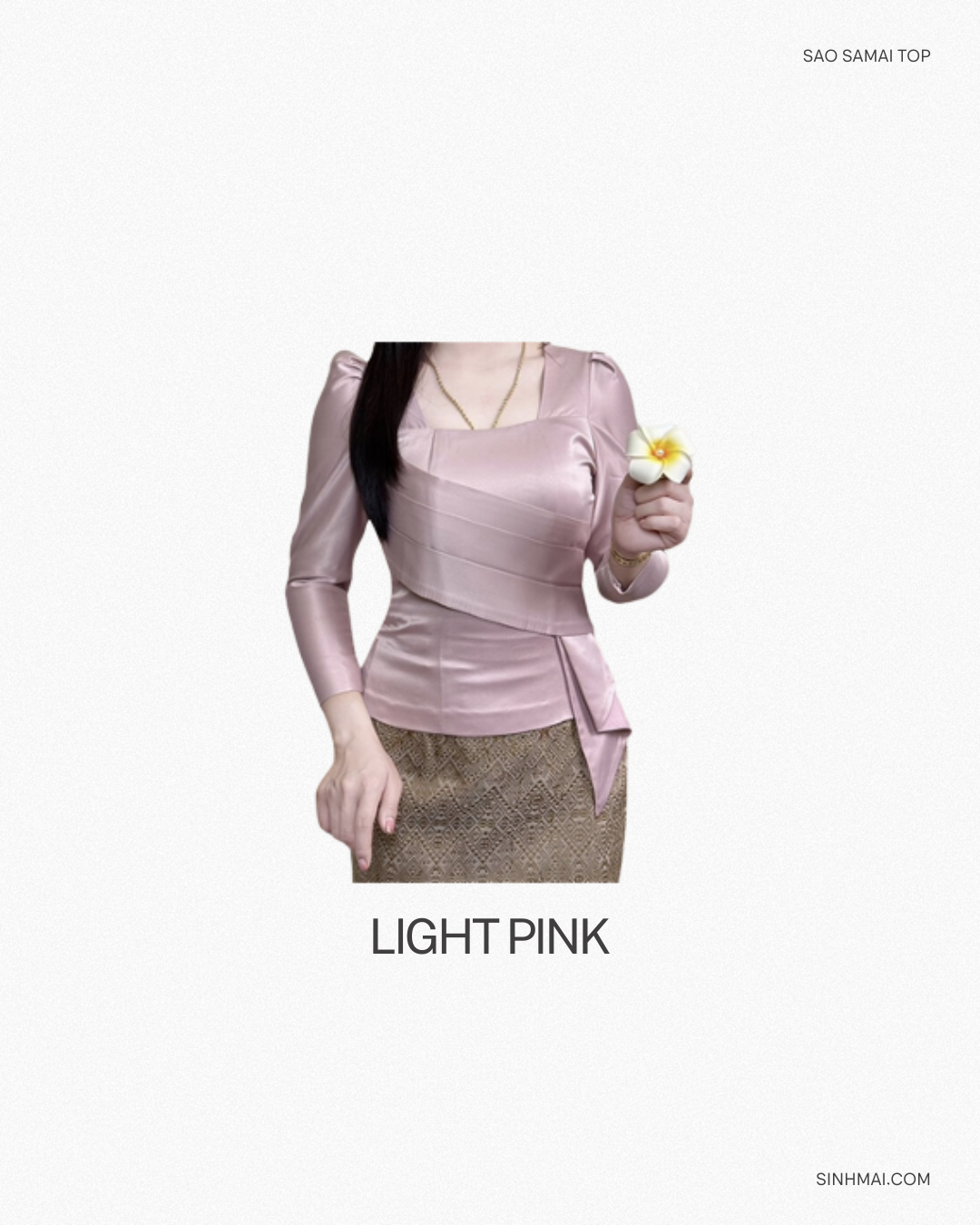 These elegant tops—featuring a fitted silhouette with a wrapped sash. Named after Laotian culture highlighting femininity and modern tradition.